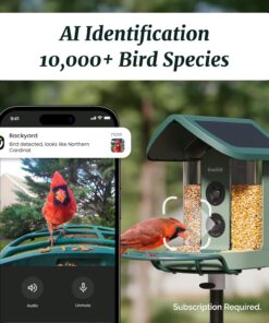 Kiwibit Beako Smart Bird Feeder with 4K Camera Solar Roof AI Bird ID Motion Detection