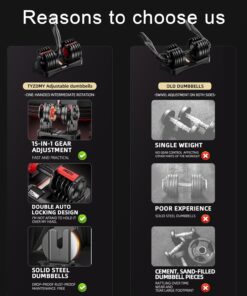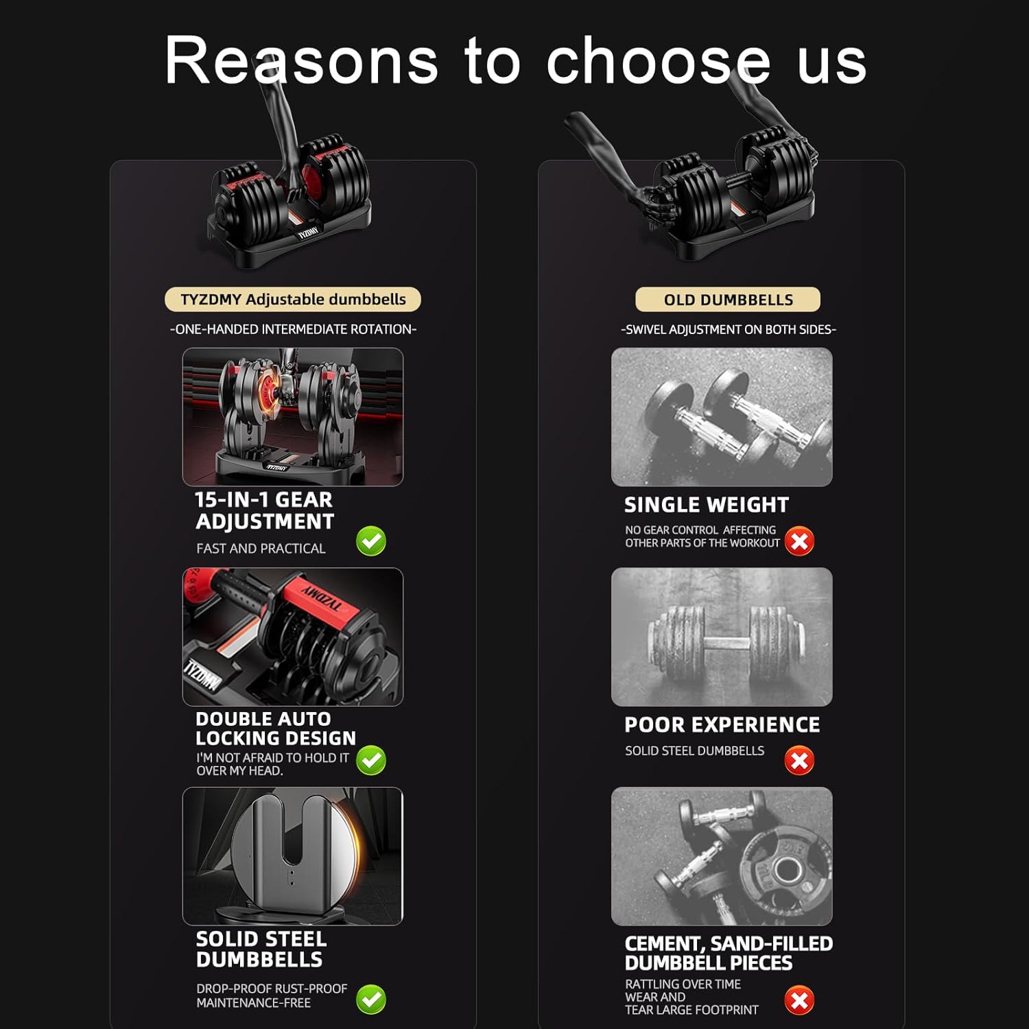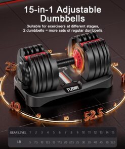 TYZDMY Adjustable Dumbbells Set 52.5 lb Pair 15 in 1 Free Weights for Home Strength Training