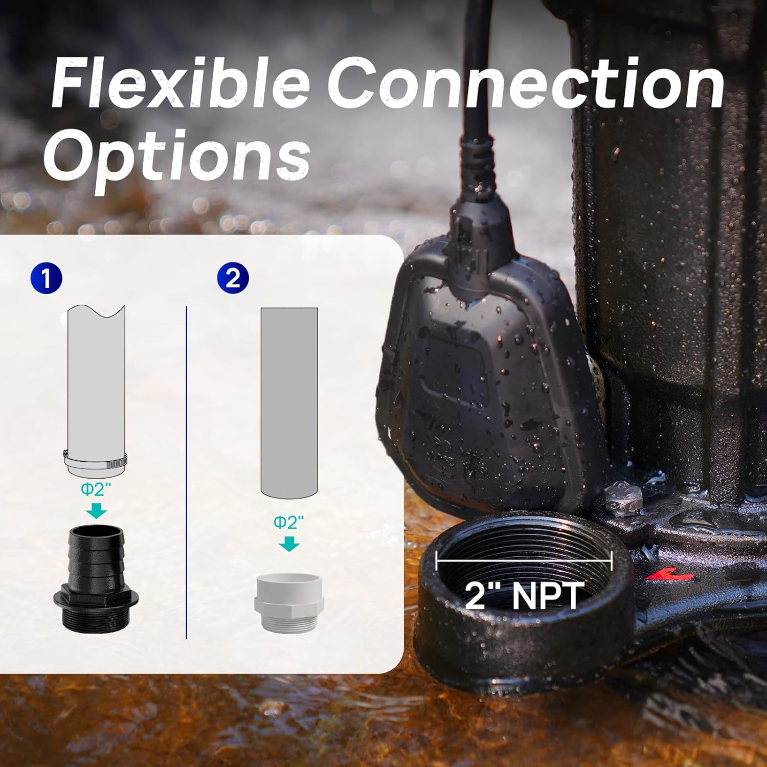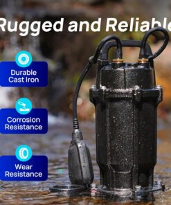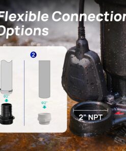 - Clog-Free 2″ Discharge: The sewage pump 2 inch discharge efficiently handles solids up to 2″, ensures smooth and uninterrupted drainage, reduces maintenance needs, and enhances overall efficiency.