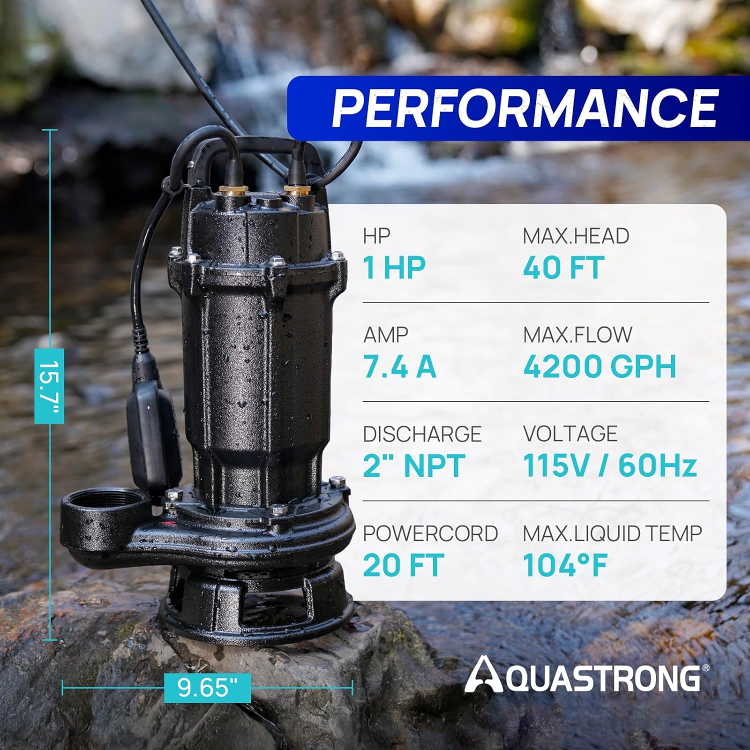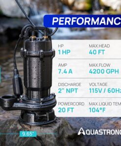 - Efficient 4200 GPH Flow Rate: The sewage pump delivers 4200 GPH flow and provides a max lift of 40 ft. Powered by 115V single-phase electricity for enhanced performance, it’s an Ideal for situations such as basement sump basin and sewage ejector pump systems. DO NOT use in gasoline, alcohol, or biogas tanks.