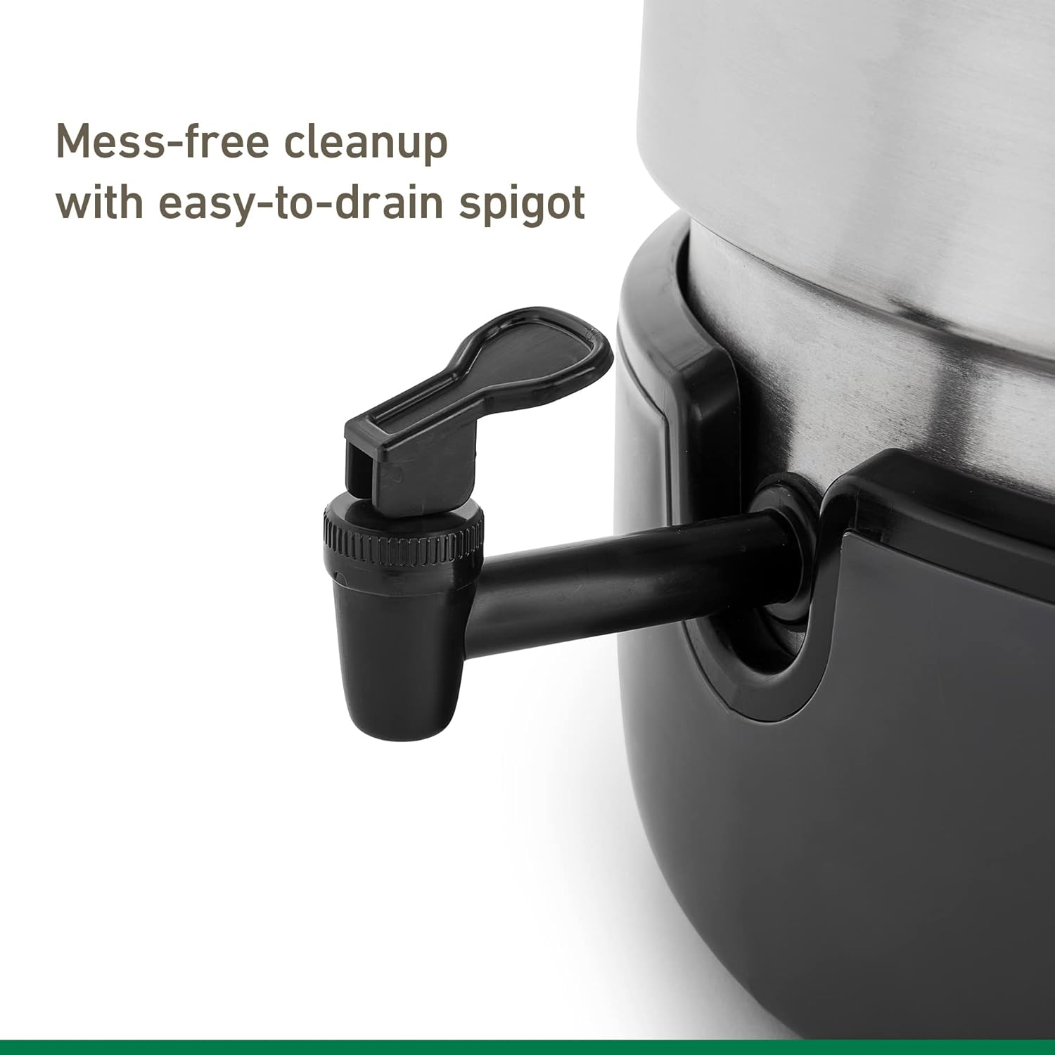 - Includes comfortable handle grips, easy-to-drain spigot, and detachable base with dishwasher-safe components; pot is hand-wash only