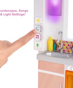 - Set the scene for any story with realistic sound effects, 2 soundscapes, 3 songs, 8 light color options, and 4 light settings including day mode, night mode, party mode and mood lighting.