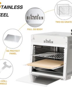 BIG HORN OUTDOORS 1500F Infrared Propane Grill Portable Steak Broiler with Pizza Stone