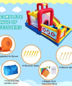 - 【Quick Inflation & Portability】The blower of the kids bounce house is made of high-quality metal impellers and robust motor. You can quickly inflate and deflate it in less than 2 minutes. The included extra large carrying bag is easy to carry and store every time. The big bouncy house with slide is the ideal recreational facility for yards, parks, lawns, basements, garages and more.