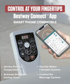 - CONTROL WITH YOUR SMARTPHONE: Compatible with the Bestway Connect app that allows you to control the temperature, timer, filter and AirJet massage system; Includes a multi-function pump, which also inflates the hot tub, controls the heat setting (up to 40ºC/104ºF), and runs the filtration system