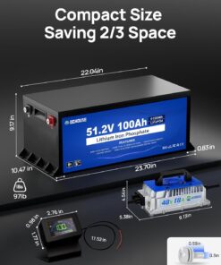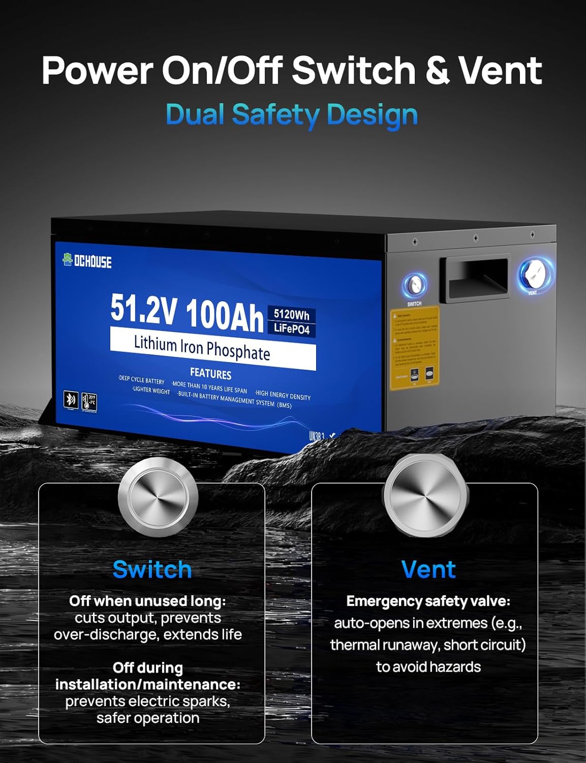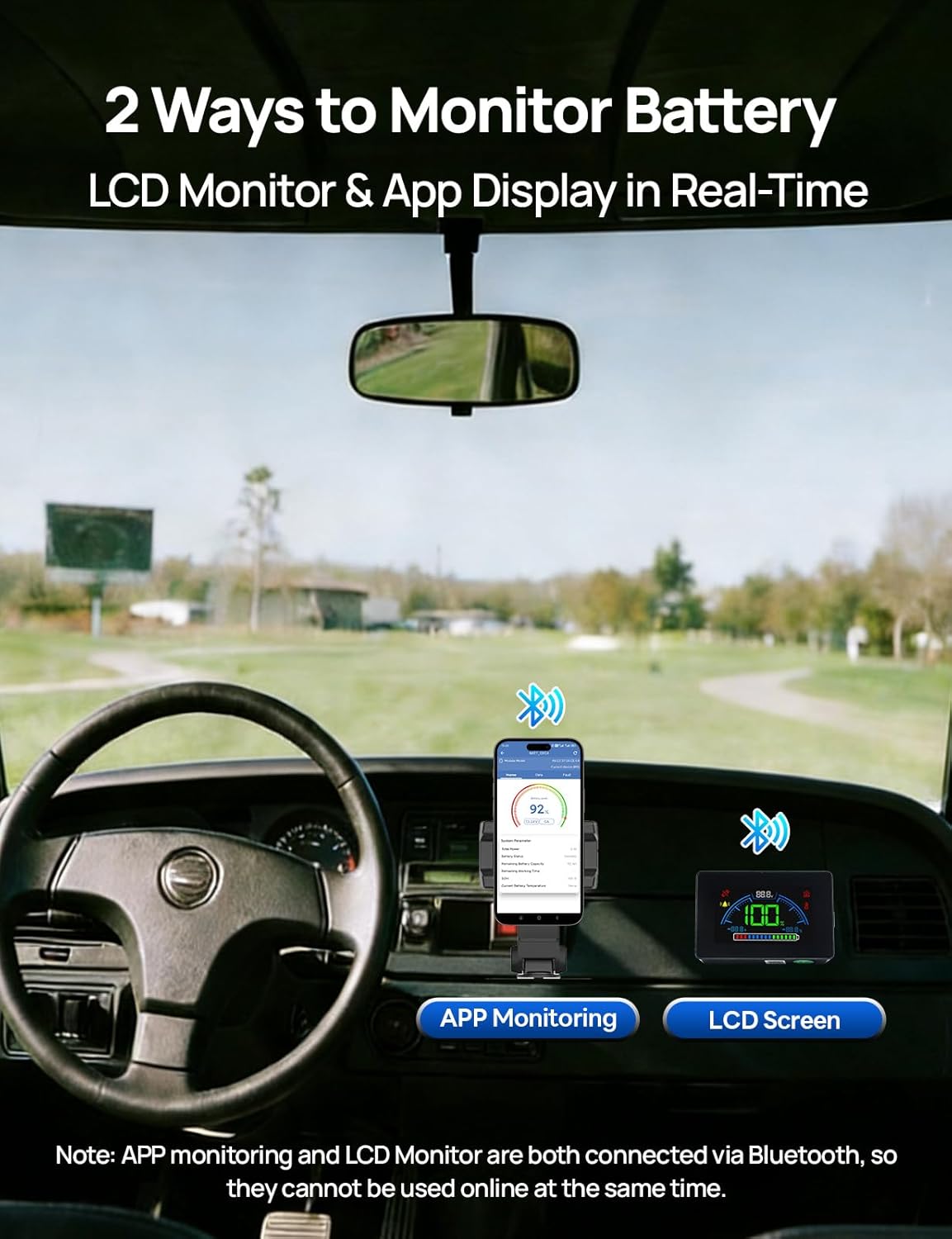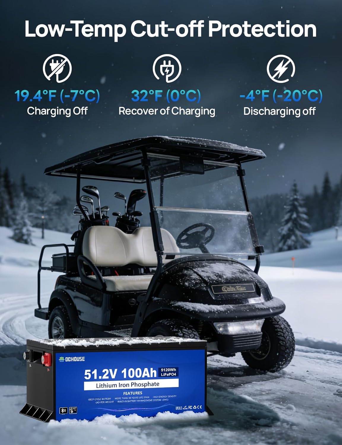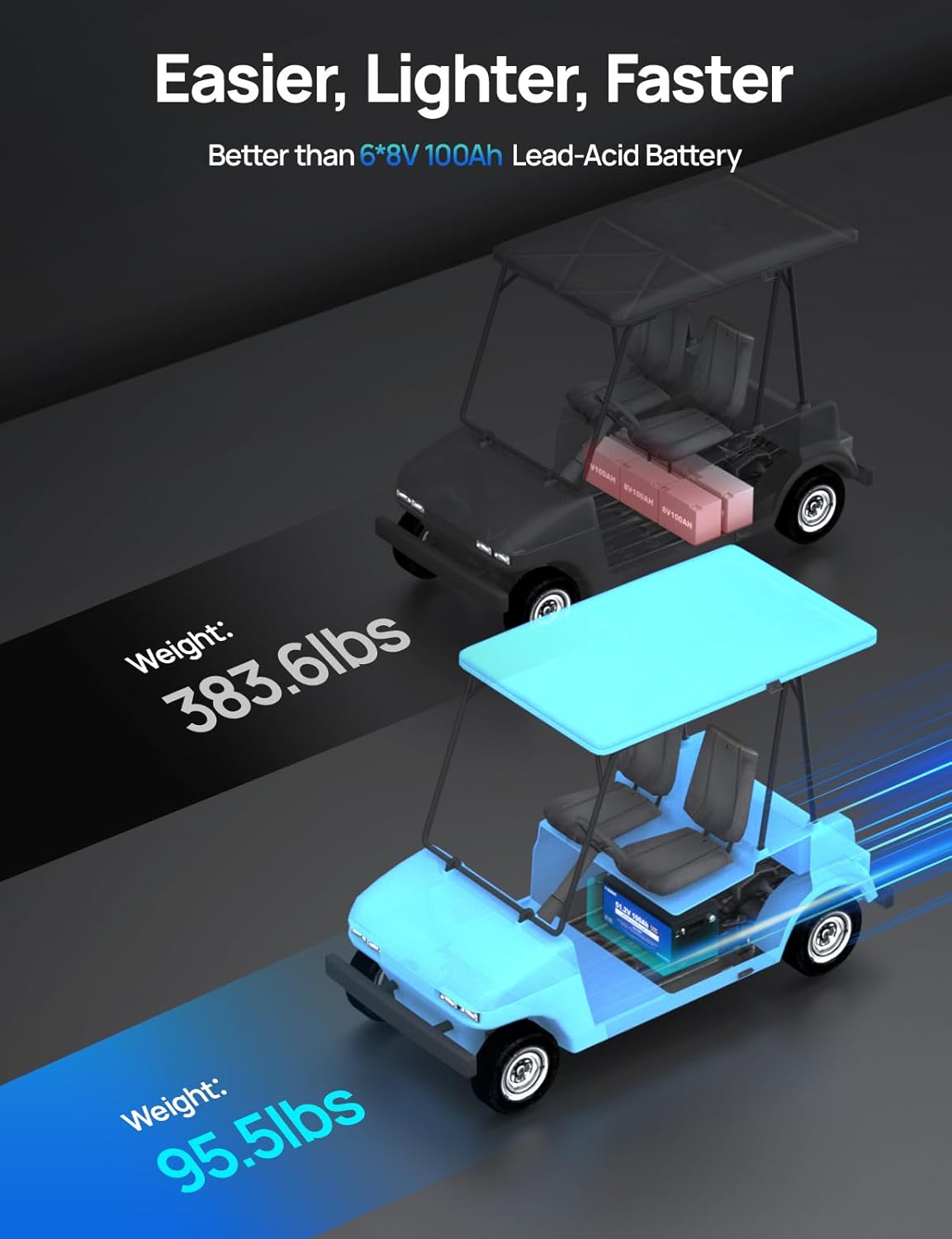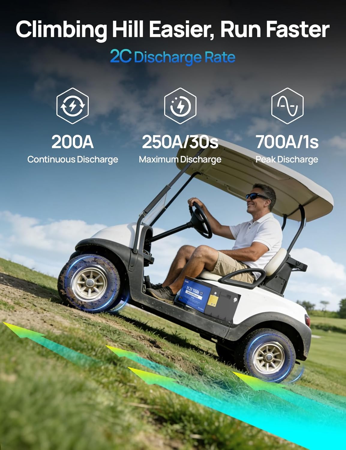 DC HOUSE 48V 100Ah Lithium Golf Cart Battery with 200A BMS Charger Bluetooth LCD