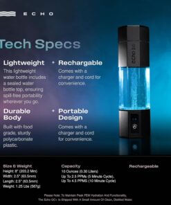 - Advanced Hydrogen Tech: The Echo Go+ Hydrogen Water Bottle features a hydrogen water generator and hydrogen infusion technology for pure hydrogen production with adjustable hydrogen levels