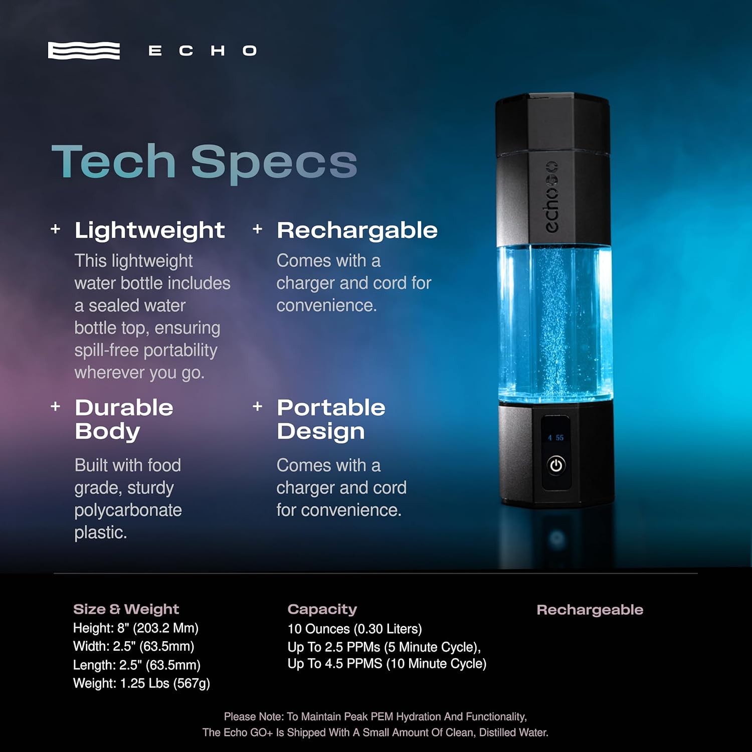 | Model Name | Echo Go+ Hydrogen Water Bottle |