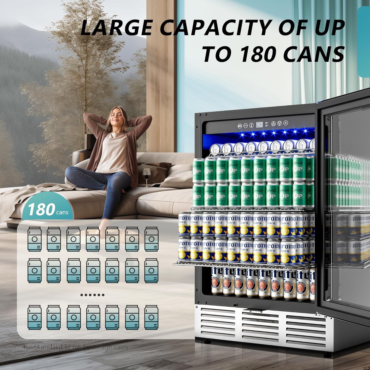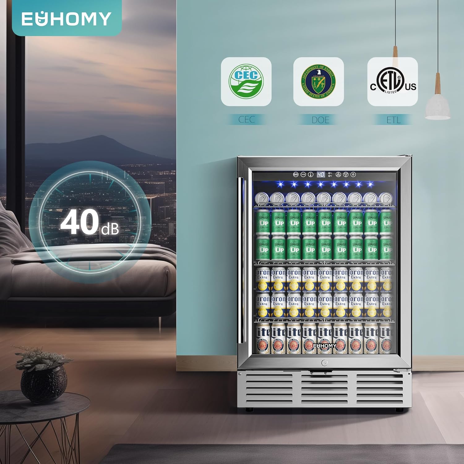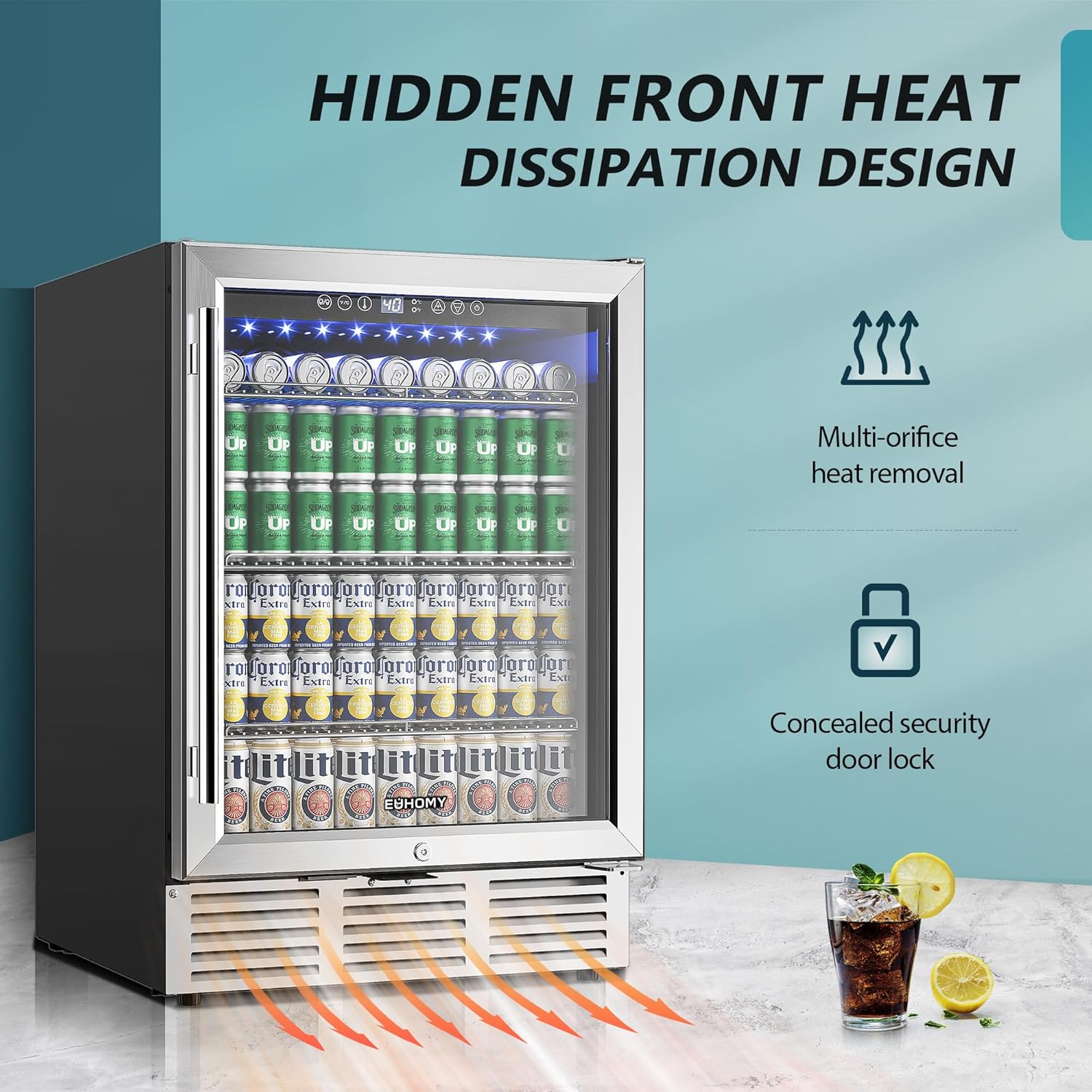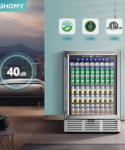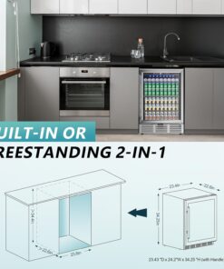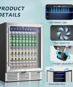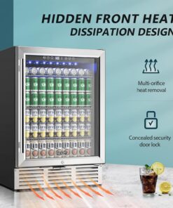 EUHOMY 24 in Beverage Refrigerator 180 Can Built In Cooler Under Counter Glass Door