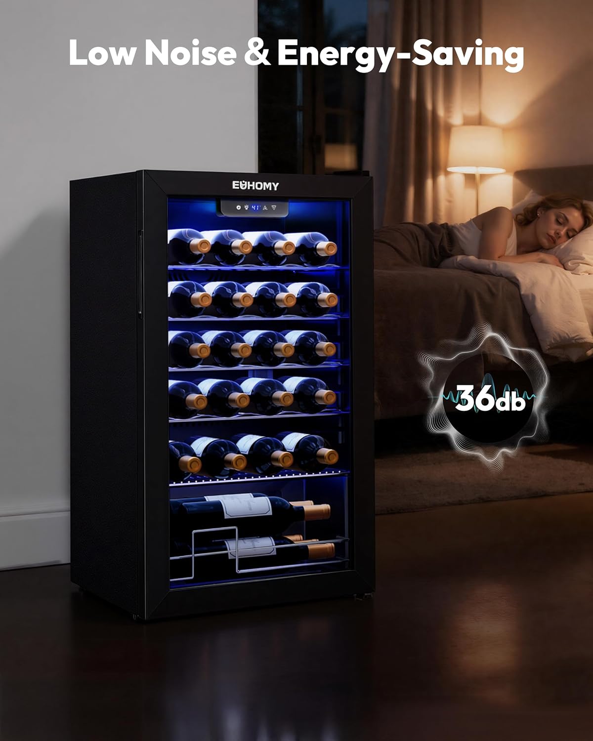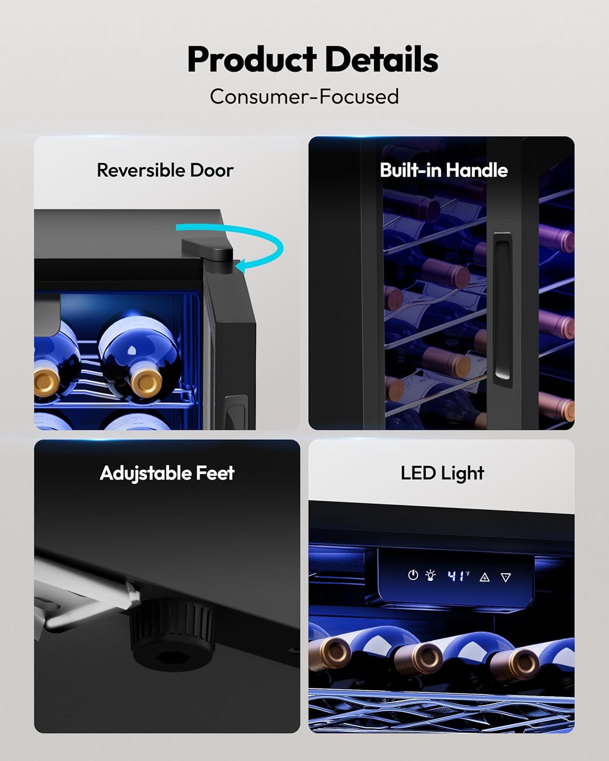 - 【Temp Control & Advanced Compressor】This wine fridge equipped with a high-performance compressor cooling system, ensuring a vibration-free and consistently quiet environment. The wine cooler coupled with an adjustable temp control range from 41 to 64℉, offers you the flexibility to store all your Red, White, and Sparkling wine or beer.