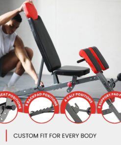 - Fully Customizable to Any Body Build – Weight benches for home gym featuring 8 backrest positions, 3 seat positions, 8 support pad positions for different heights, and 4 calf positions, offering endless adjustable bench options.
