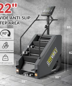 - Product Dimension: Measuring 38”L × 50”W × 80.7”H, this stair stepper machine fits compact home gym spaces. The step size of the stair stepper machine is 22.4″L x 9.4″W x 8.3″H, allowing you to experience secure and comfortable climbing. Product weighs 408 pounds and has a maximum load-bearing capacity of 375 pounds. The stair machine will be delivered in a sturdy wooden crate (LTL shipping), arrive 90% pre-assembled