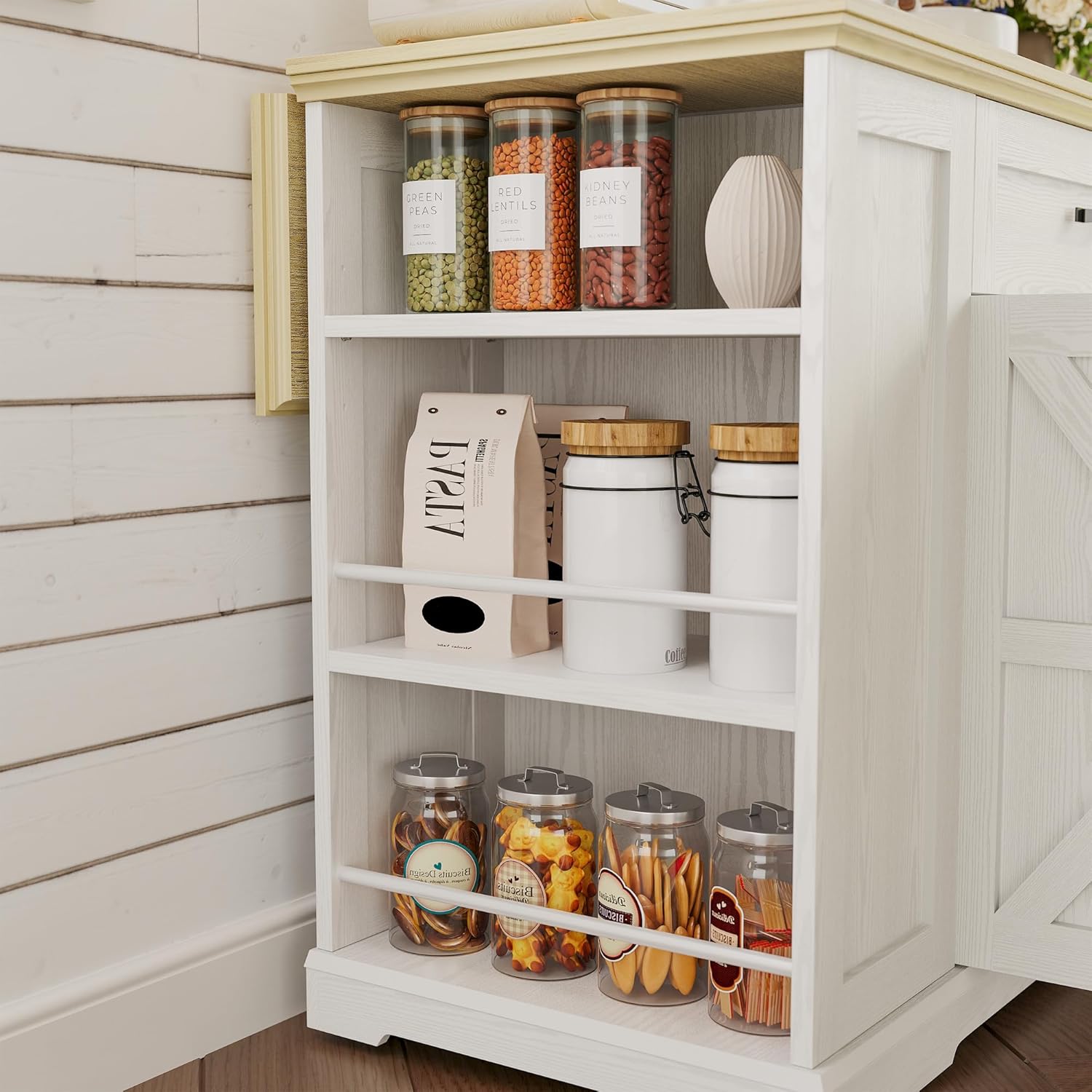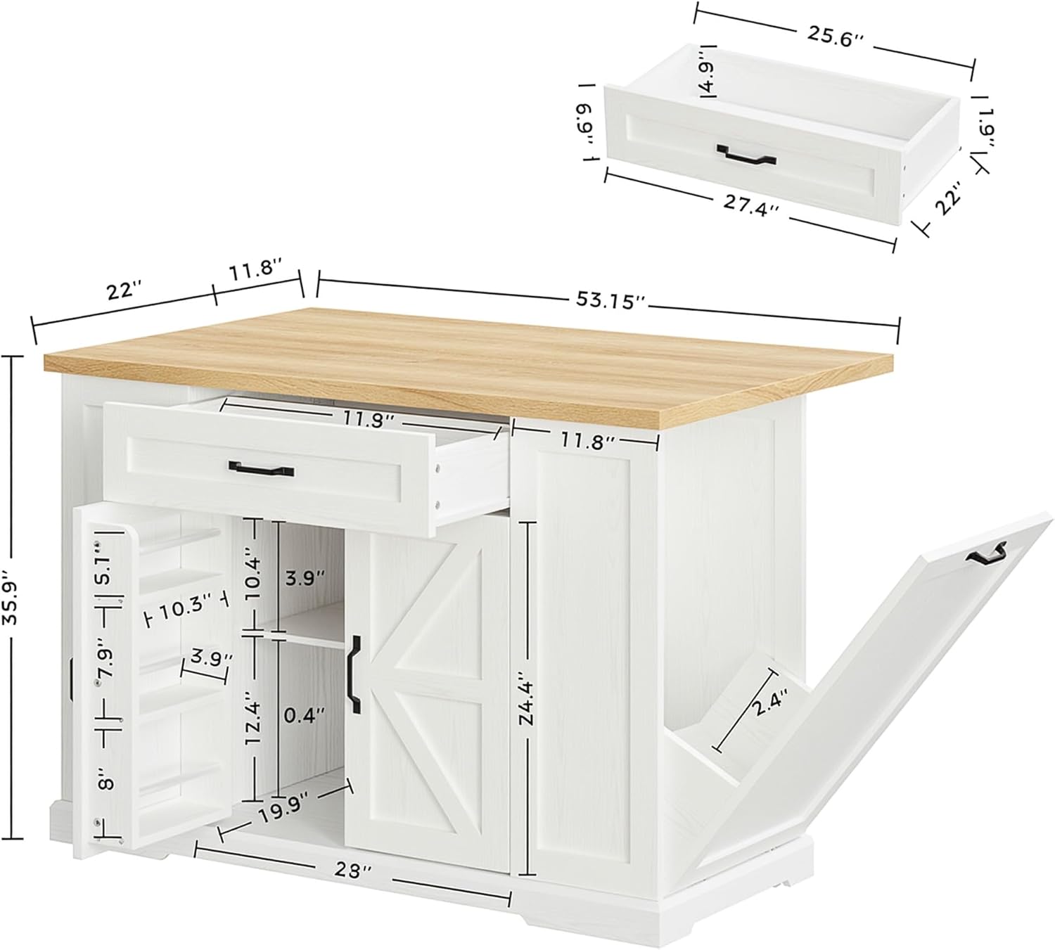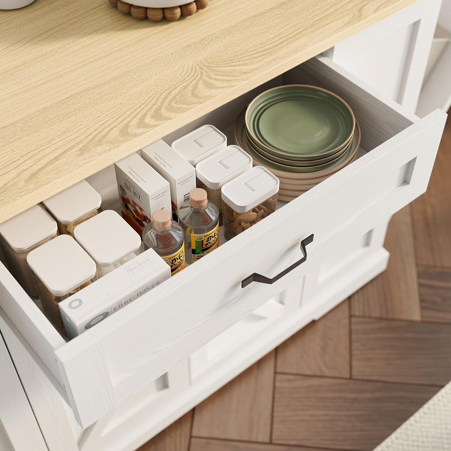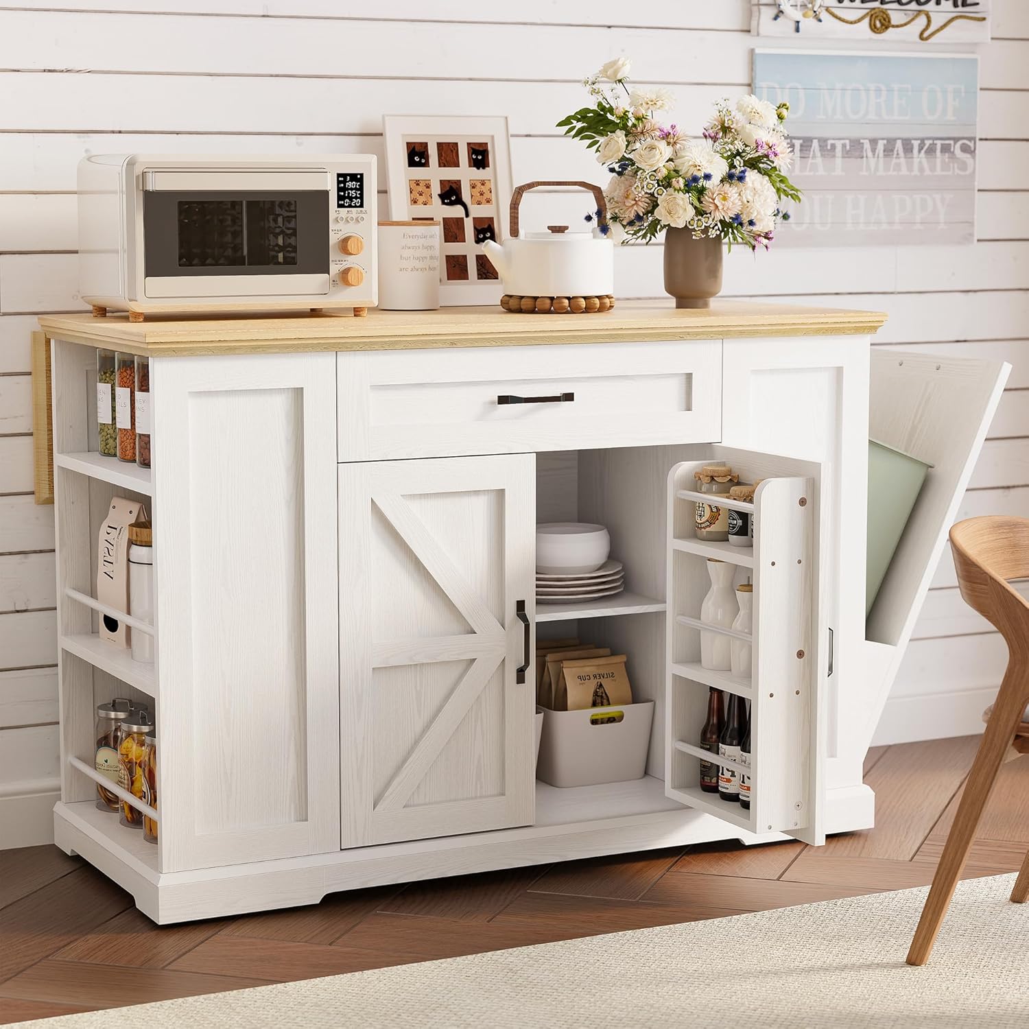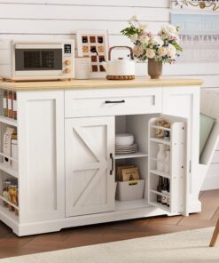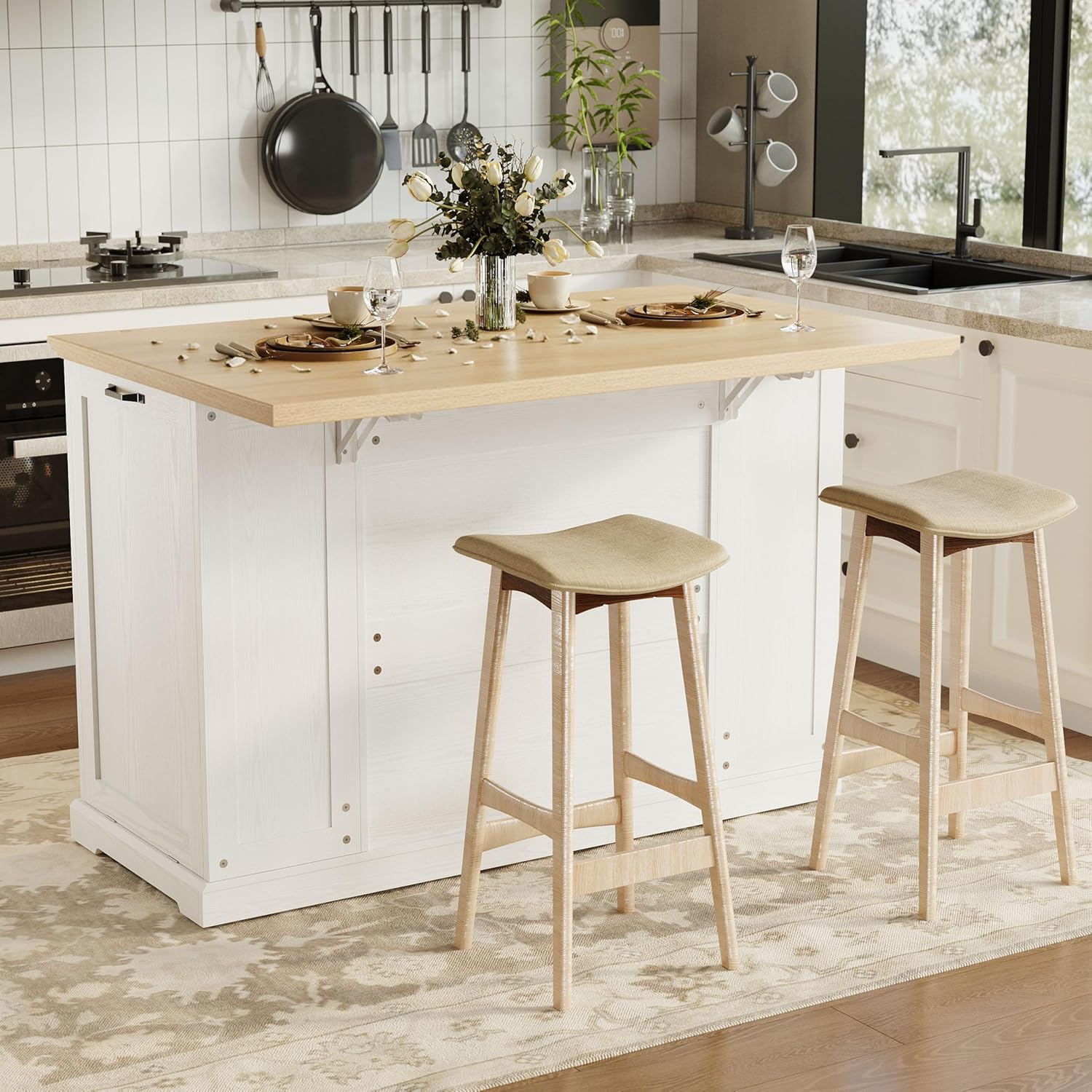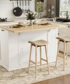 - Kitchen Island with Drop Leaf: This rolling kitchen island features a practical folding design that maximizes kitchen space. Expand it to increase the area for meal preparation and dining, while saving valuable space when folded
