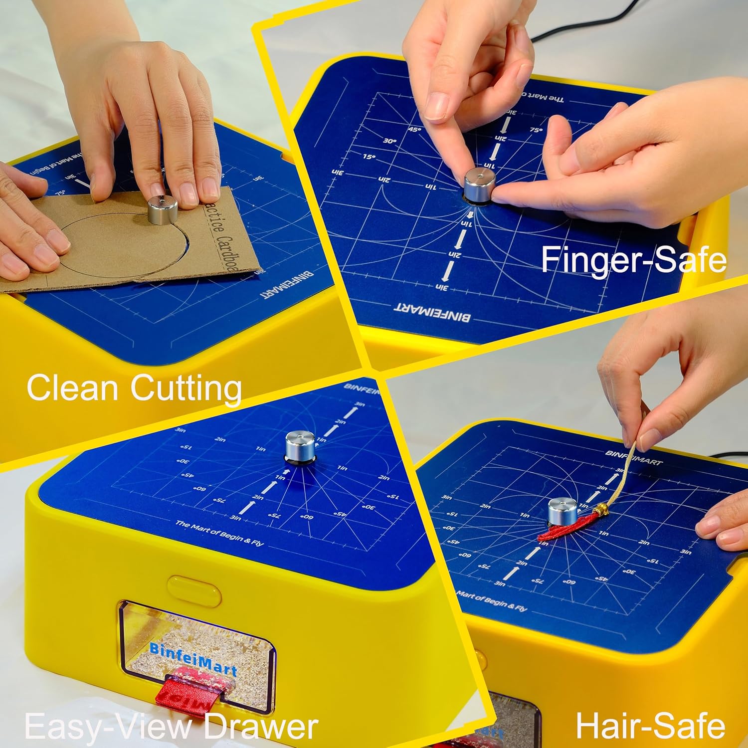 - LED-Lit Transparent Dust Collection Drawer: See cutting debris in real time while operating—sealed design traps almost all scraps, no messy floors/tabletops! Perfect for tidy homes & classrooms.