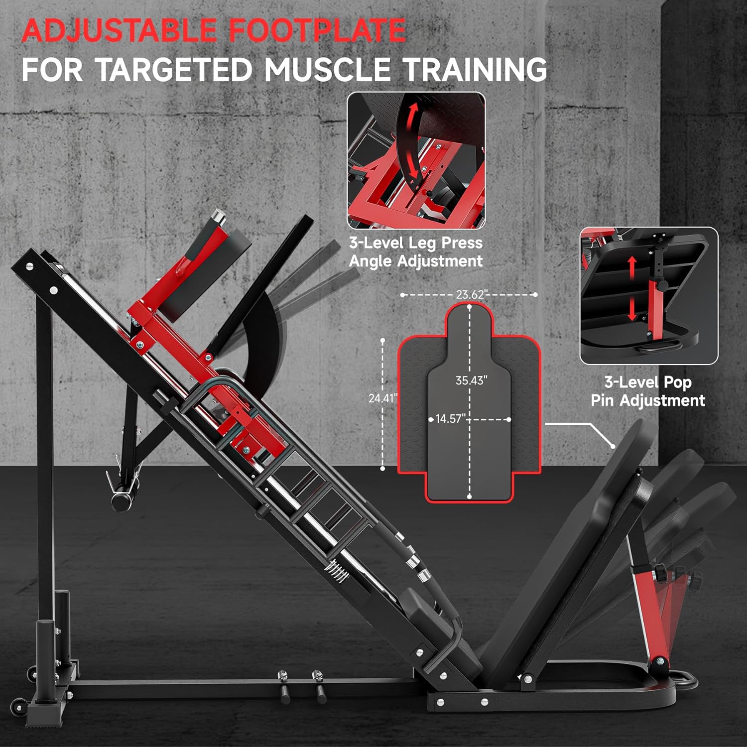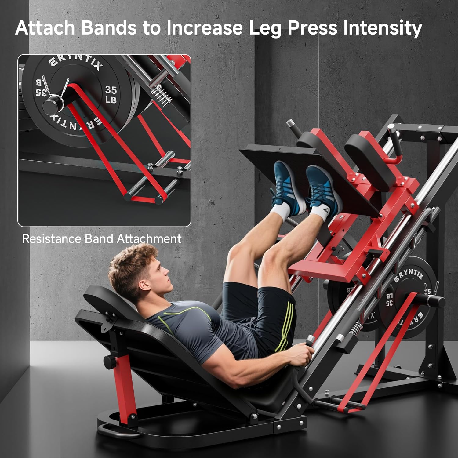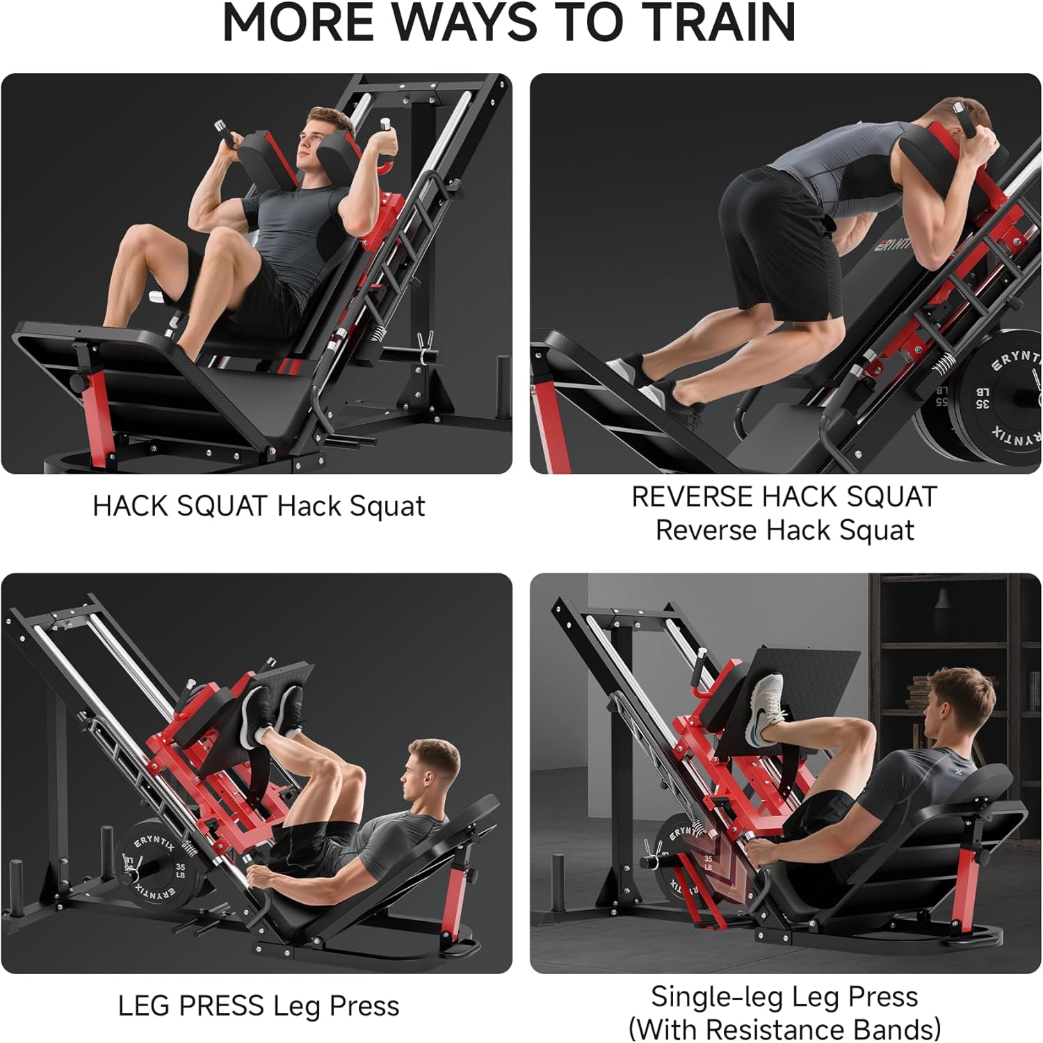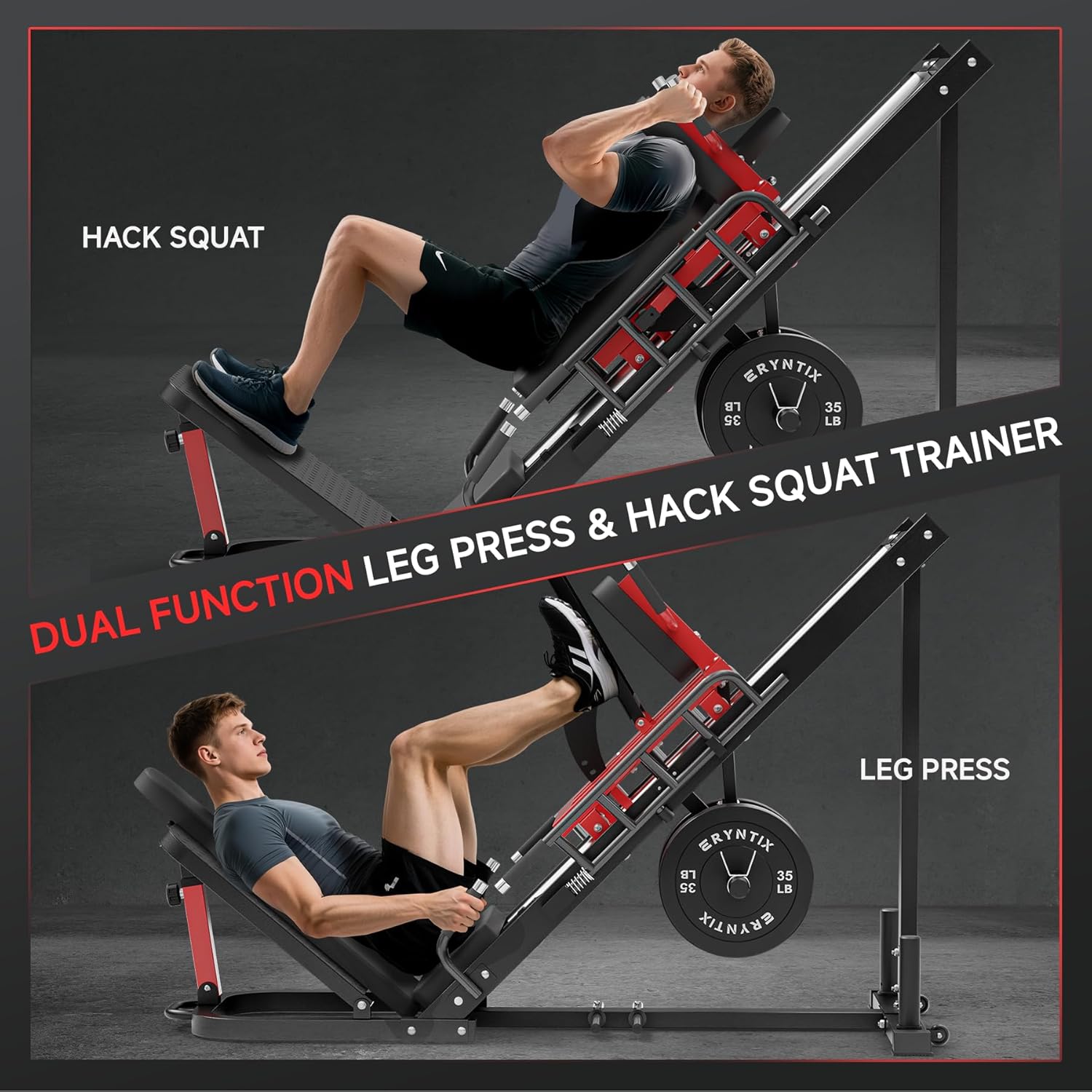 Eryntix Leg Press Hack Squat Machine Combo 45 Degree Lower Body Exercise with Weight Storage