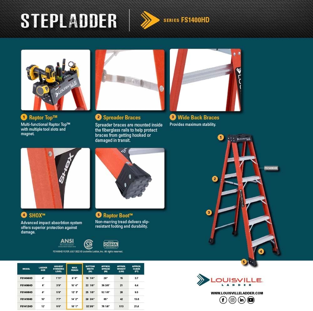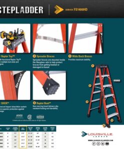 Louisville Ladder FS1408HD 8 ft Fiberglass Step Ladder 375 lb Capacity Type IAA