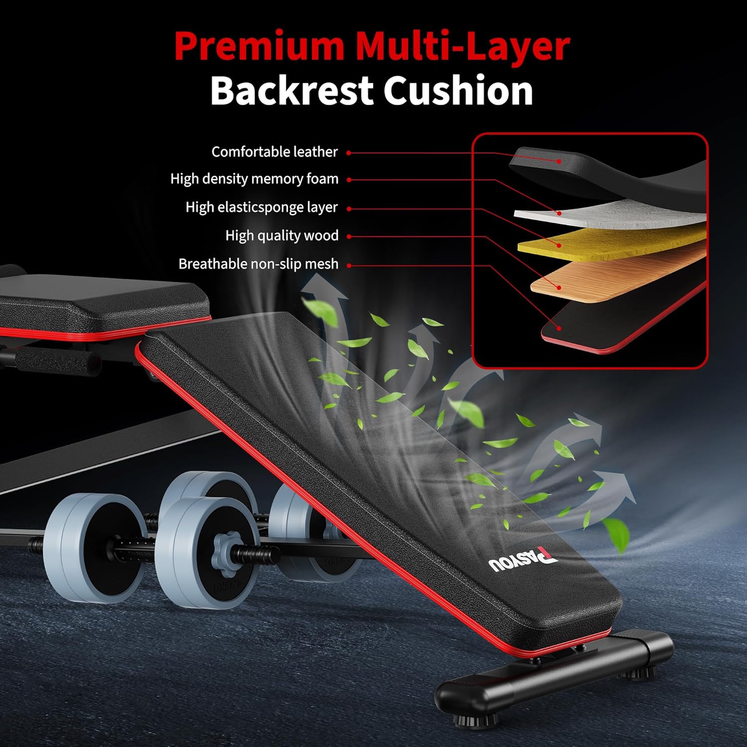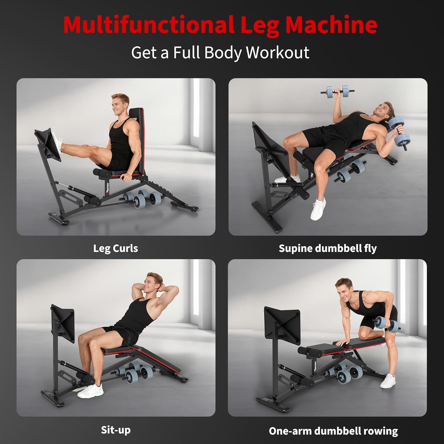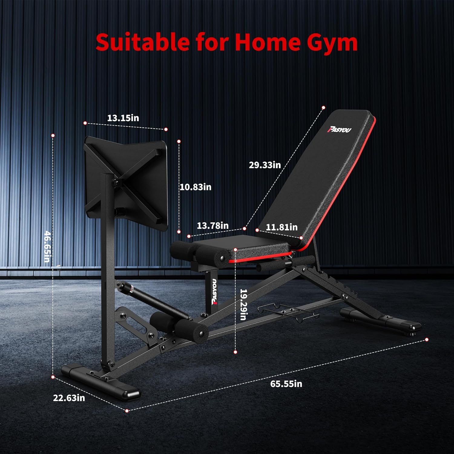 - 【Adjustable Design】PASYOU weight bench with leg extension has 9 adjustable backrest angles, fitting chest, shoulders, arms and core training for multi-area workouts. Equipped with a practical dumbbell rack (dumbbells not included), Compared to large fitness equipment, this leg workout machine takes up less space, making it exceptionally convenient for home placement