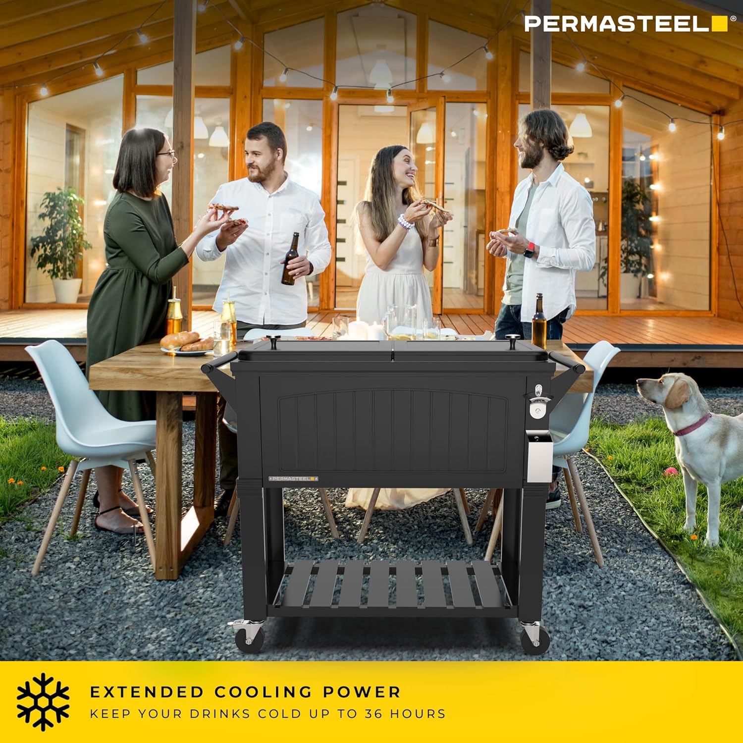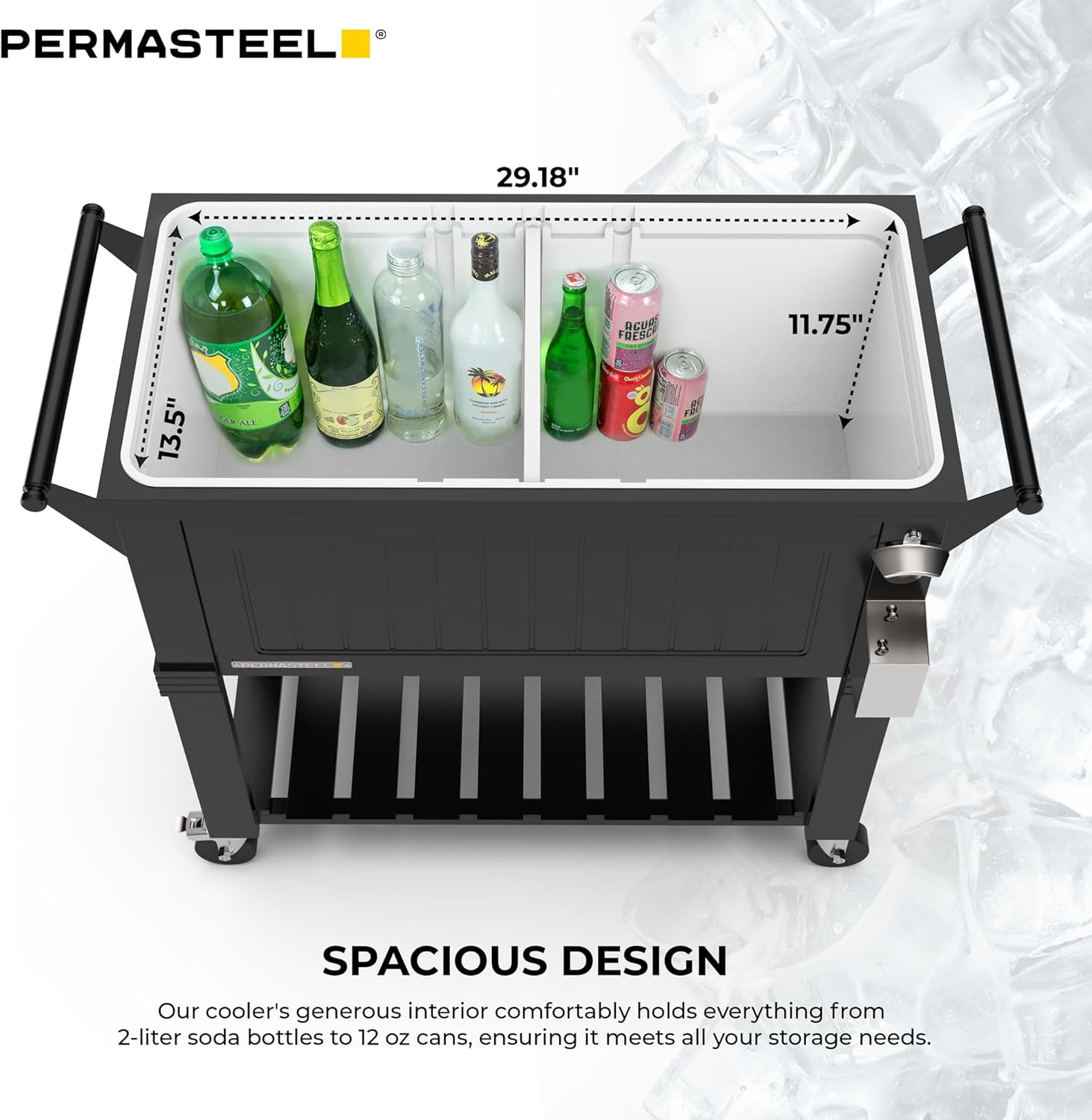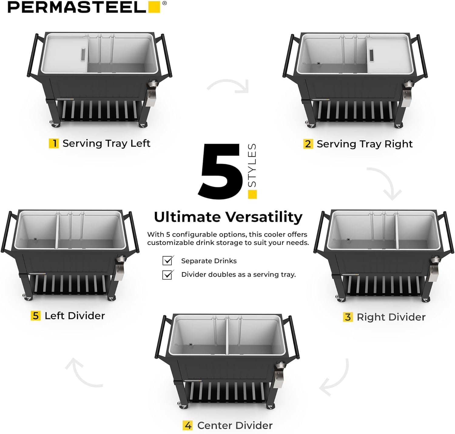 Permasteel 80 Qt Rolling Party Cooler with Divider Serving Tray and 36 Hour Ice Retention