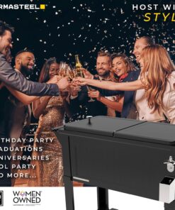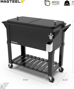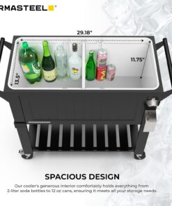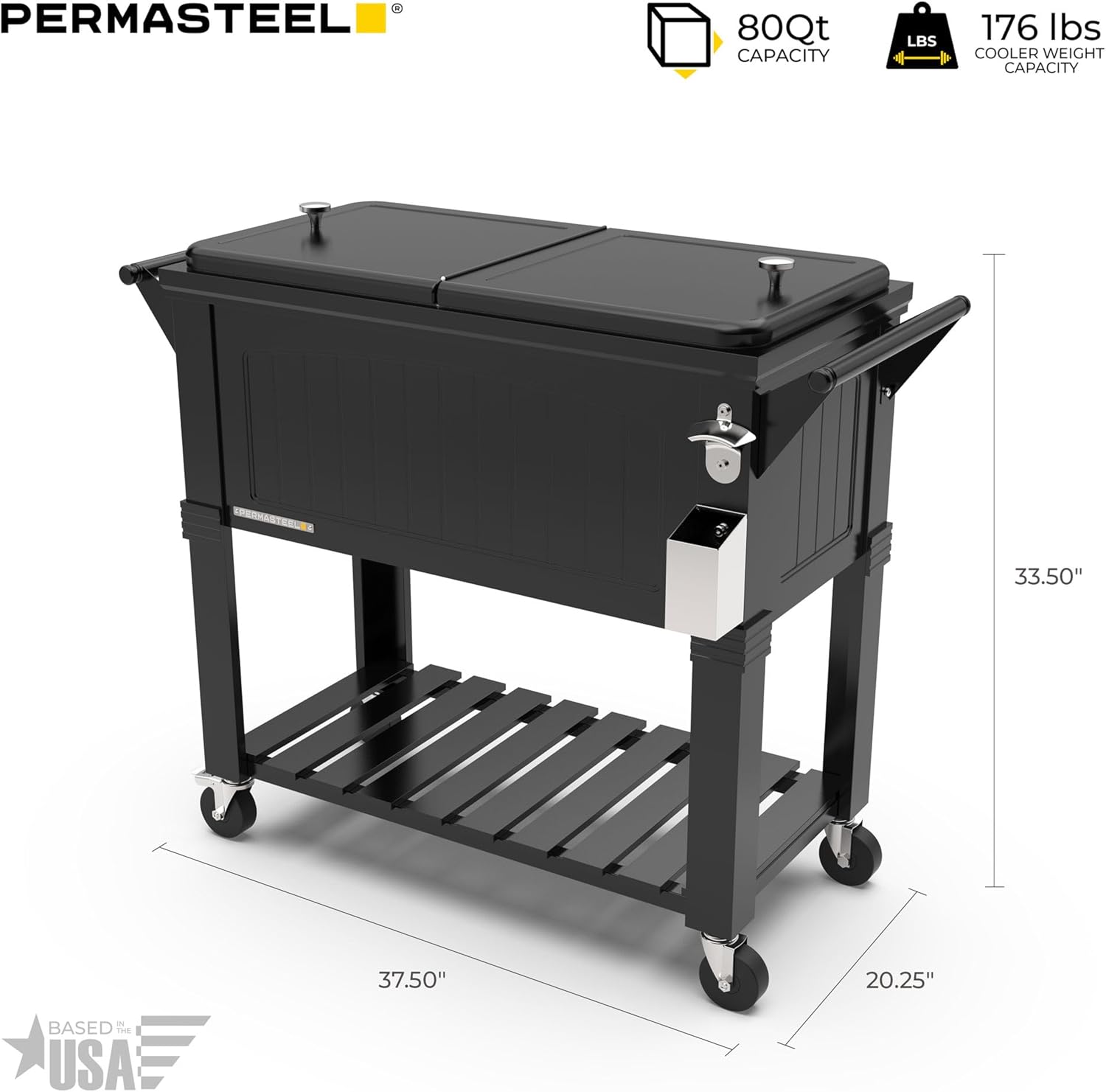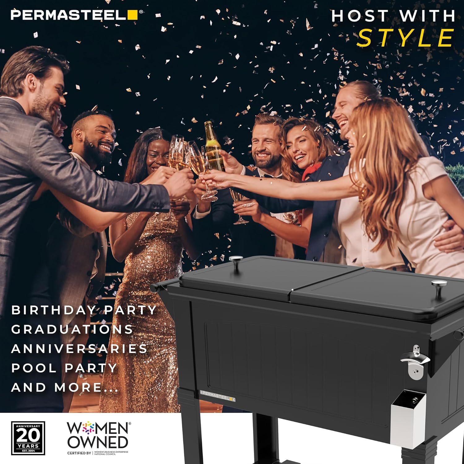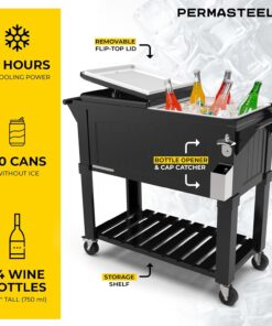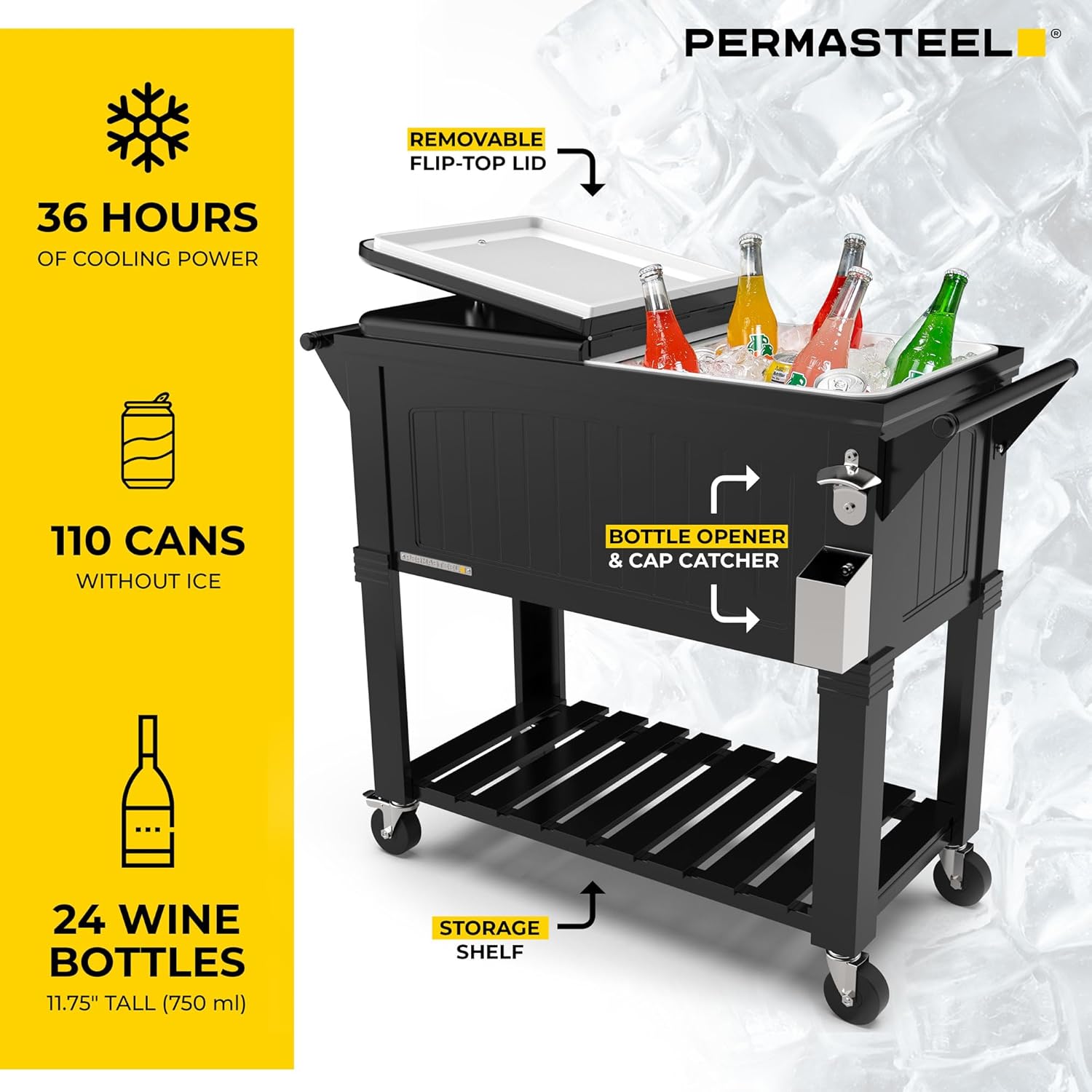 Permasteel 80 Qt Rolling Party Cooler with Divider Serving Tray and 36 Hour Ice Retention