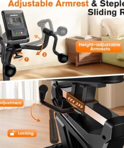 - 【Adjustable Handlebar/Seat/Pedal 】The front armrest is adjustable to accommodate different heights. Designed with convenient adjustable sliding seat rail system, the seat length can be adjusted from 0 to 18.5inch, suitable for user height up to 6’3″, and they can enjoy a comfortable sports experience. Pedal straps with 8 hole positions on both sides combined, fits different shoe sizes.