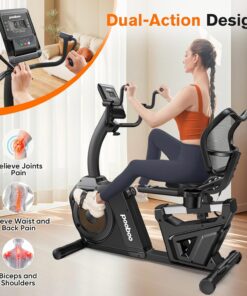 - 【Dual Motion Recumbent Bike】Equipped with the Hand Cranked Armrest, our recumbent bike allows for both synchronized and independent arm and leg workouts, offering a flexible approach to your full-body. ① Upper body training builds arm muscles to improve upper arm muscle strength and coordination. ②Lower body training can enhance leg muscle endurance and strength, improve balance ability. ③Simultaneous training of upper and lower can improve limb flexibility.