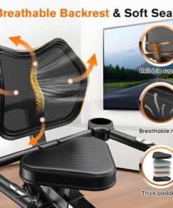 - 【Ergonomic Breathable Large Backrest】Designed according to the shape of the human spine, the breathable mesh backrest significantly boosts airflow and it fully fits and supports the waist, reduces shock and protects the waist, and enhances the comfort of exercise. And breathable fabric keeps the body refreshed at all times.