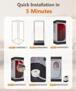- 【Spacious & Comfortable for All Users】Generous 32″ x 32″ x 71″ interior of personal sauna box fits users of all sizes. The heavy-duty folding chair (18″ x 18″ x 26″) features waterproof Oxford fabric and a reinforced steel frame, supporting up to 450 lbs for maximum stability and durability.