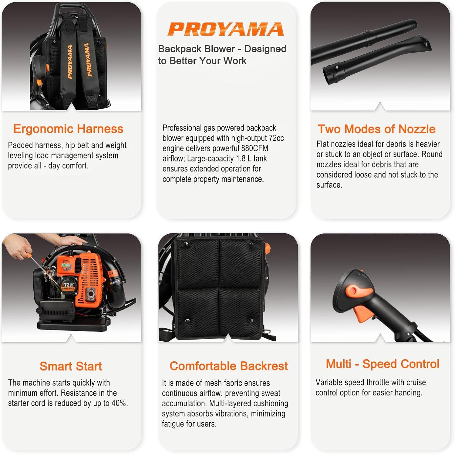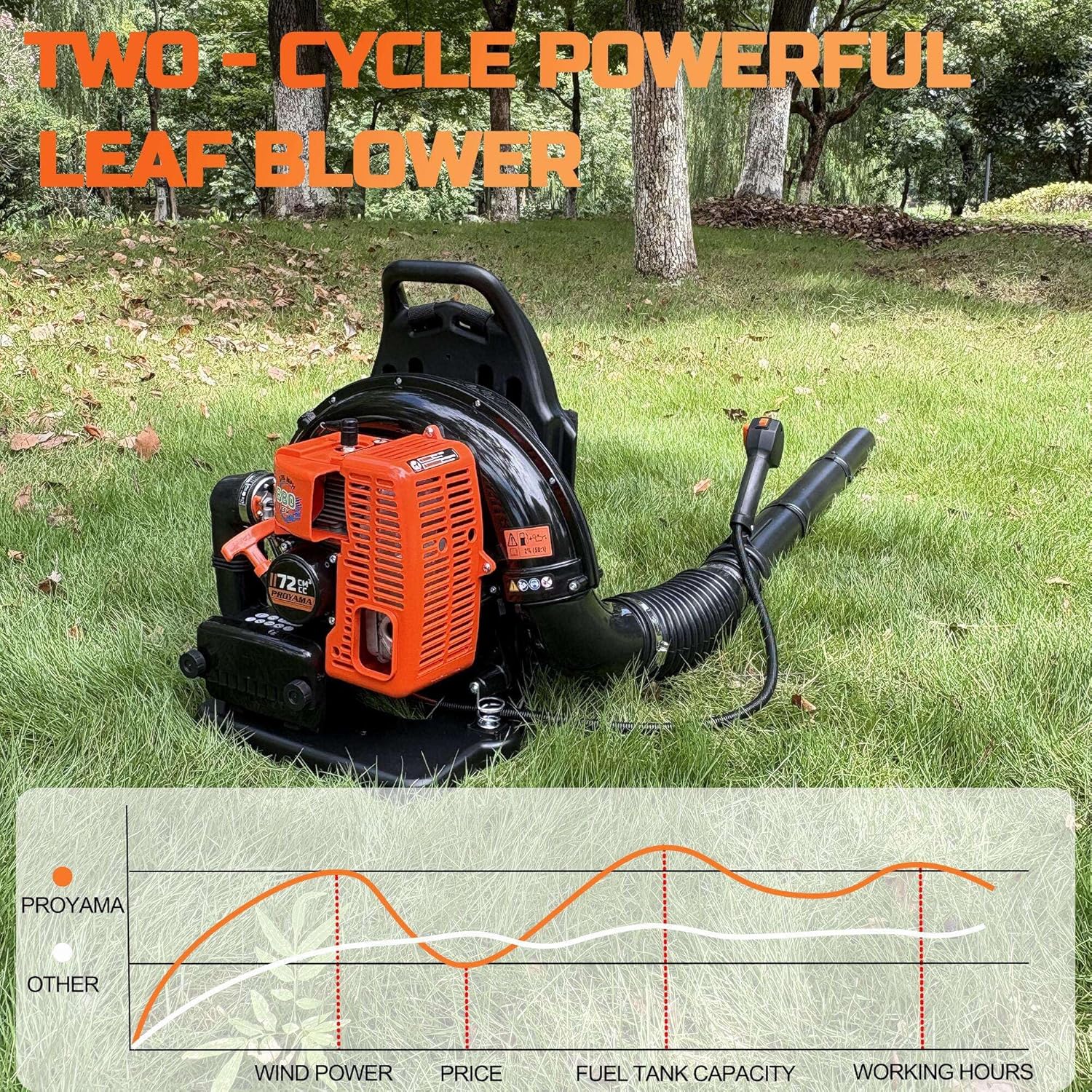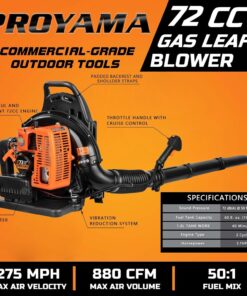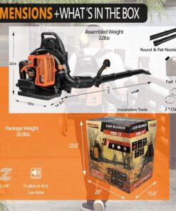 - Powerful Gas Engine: Powered by an 72CC 2 – cycle engine, this commercial-grade blower delivers 3.7HP power, making it capable of tackling even the most demanding tasks with ease, making leaf, debris, and light snow removal effortless in any season