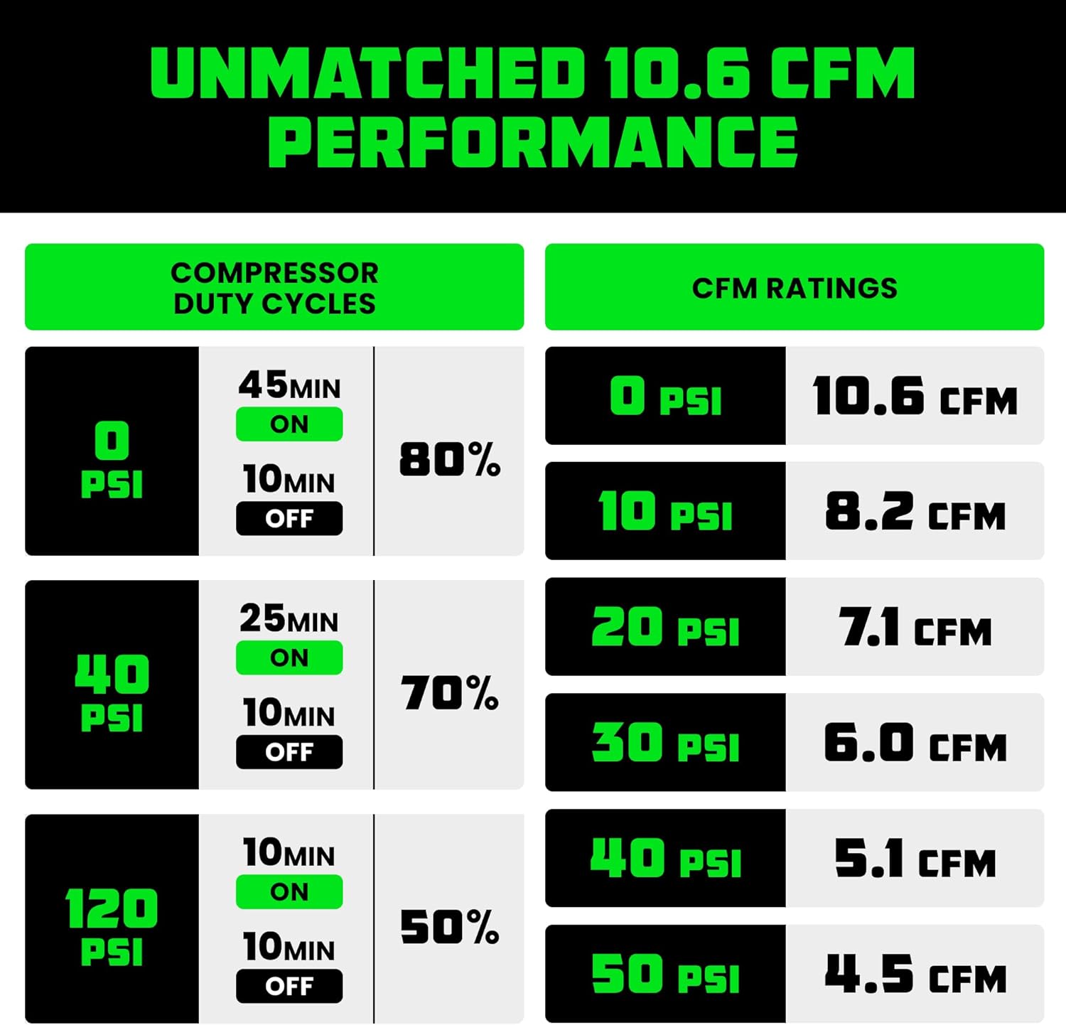 | Air Flow Capacity | 10.6 Cubic Feet Per Minute |