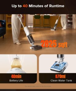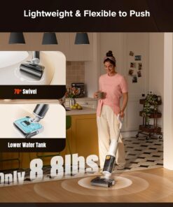 - Edge-to-Edge Cleaning & Effortless Maneuverability: Get ready for edge-to-edge cleaning within a mere 1 mm (<0.03 inches) of baseboards, staircases, and couches. No more missed spots or pesky pet hair hiding in corners! The 70-degree flexible head and strategically positioned water tank provide optimal balance, allowing this vacuum to glide smoothly across all types of flooring, making every cleaning session a delightful experience
