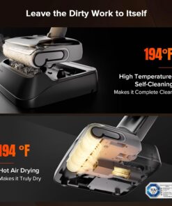 - Self-Cleaning with 194°F High Temperature & Air Drying: No more dirty mop heads! After cleaning ceramic or concrete floors, the 194°F high temperature system melts away gunk, while hot air drying keeps the roller brush odor-free. Great for high-traffic areas like kitchens and entryways