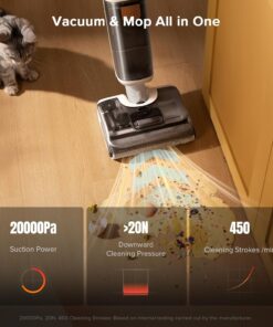 - Deep Cleaning Power for Everyday & Tough Messes: With 20000Pa suction and 450 RPM spinning, this cordless wet dry vacuum cleaner easily lifts pet hair, spilled cereal, kitchen grease, and bathroom grime from bare floors and vinyl plank. Clean up mud near the balcony or dust on wooden stairs—no need to switch tools or mop by hand