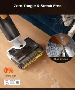 - No Streaks & No Hair Clogs: Enjoy a streak-free shine every time! Our vacuum mop all in one features dual scrapers for a flawless finish, and the curved comb wiper ensures no pet hair tangles on large areas. SGS and TUV anti-tangle certified, this wet dry vacuum cleaner delivers smooth, uninterrupted performance with every glide across your hard floors