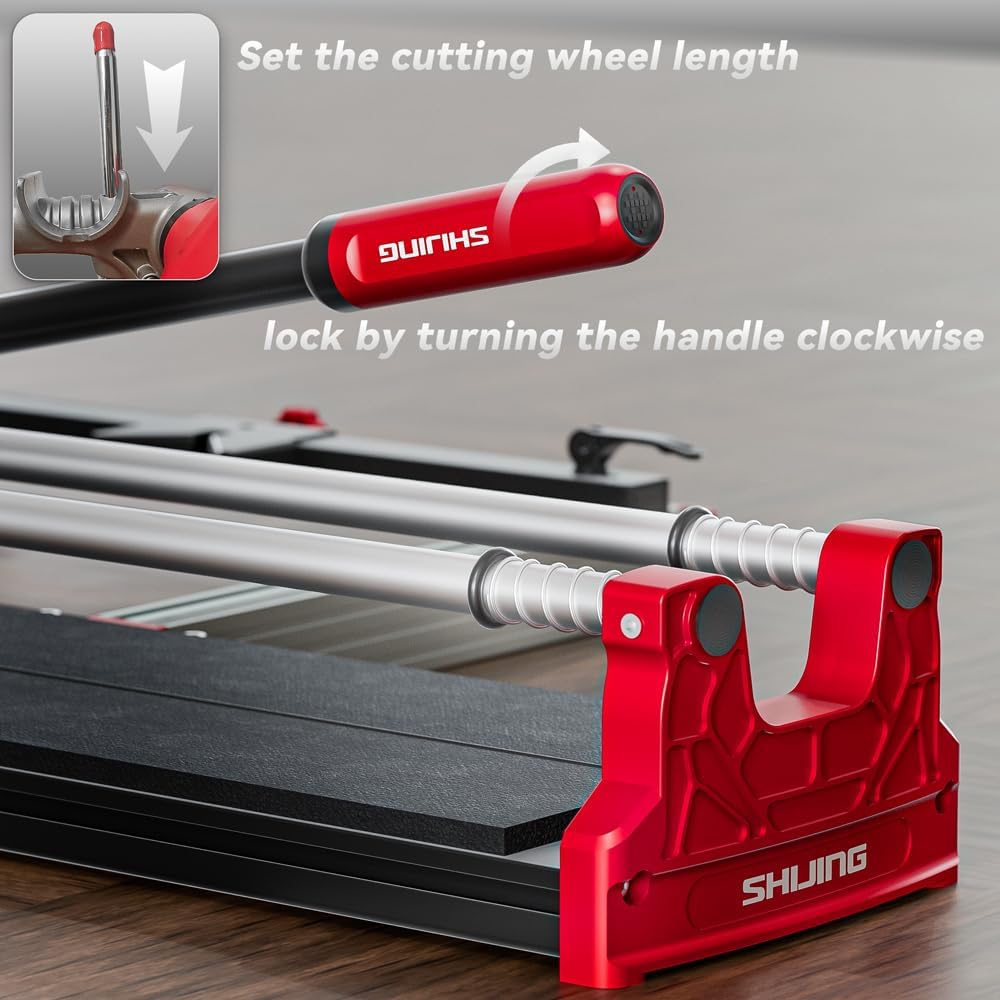 - High-Hardness Tungsten Carbide Cutting Wheel – SHIJING ceramic tile cutter features a high-hardness tungsten carbide cutting wheel, also known as a tile cutting wheel or tile cutter blade, which effortlessly cuts through ceramic tiles, porcelain tiles, marble, granite, and other hard materials, ensuring efficient and precise cutting every time.Extending the life of the Cutting Wheel, Tungsten Carbide Cutting Wheel has a life span of 30,000 meters or more.