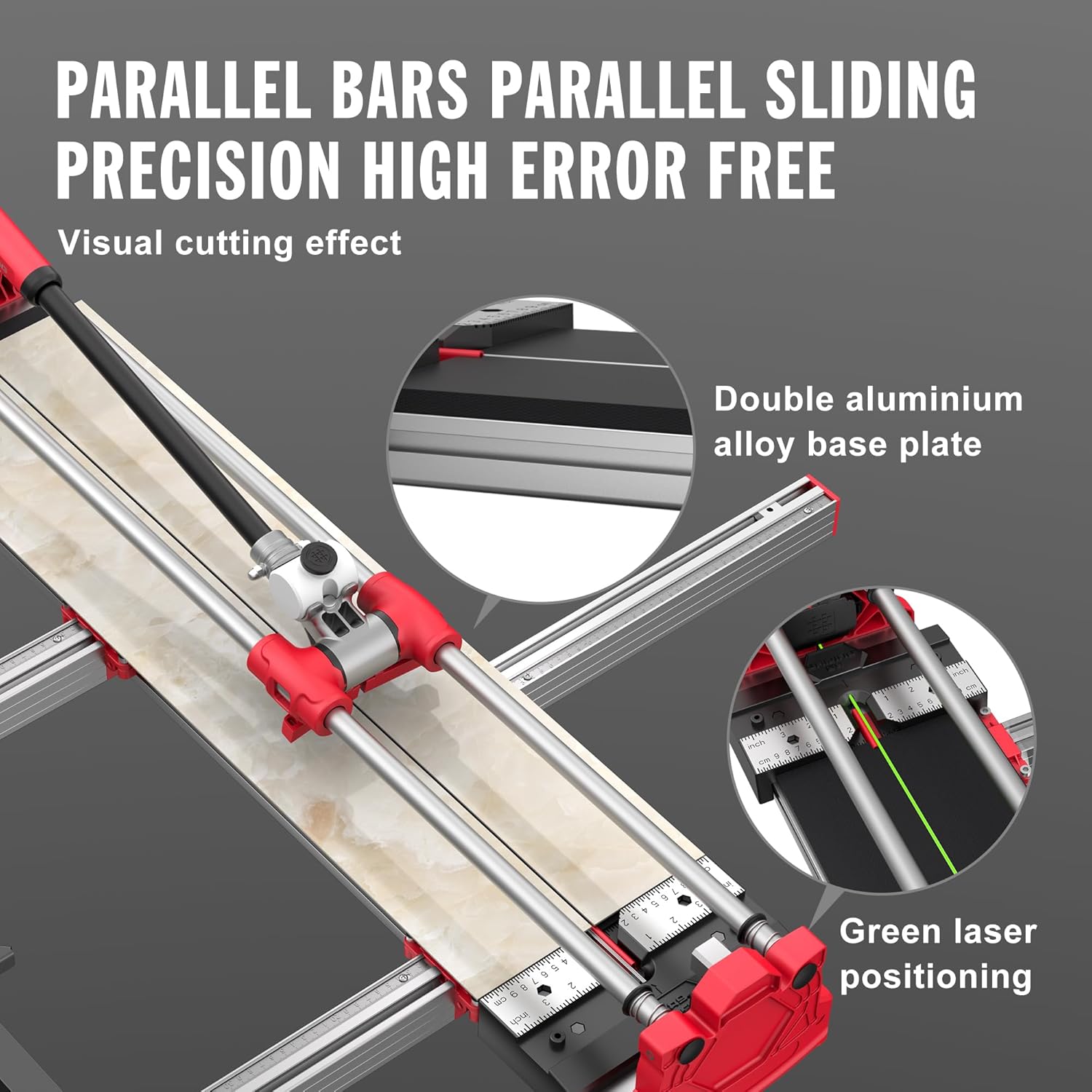 - Double-Layer Aluminum Plate Structure – Large format tile cutter has a double-layer aluminum plate structure, which provides stability and durability, prevents deformation, and prolongs its lifespan. It is also known as an aluminum tile cutter, as it is made of lightweight and corrosion-resistant aluminum alloy.