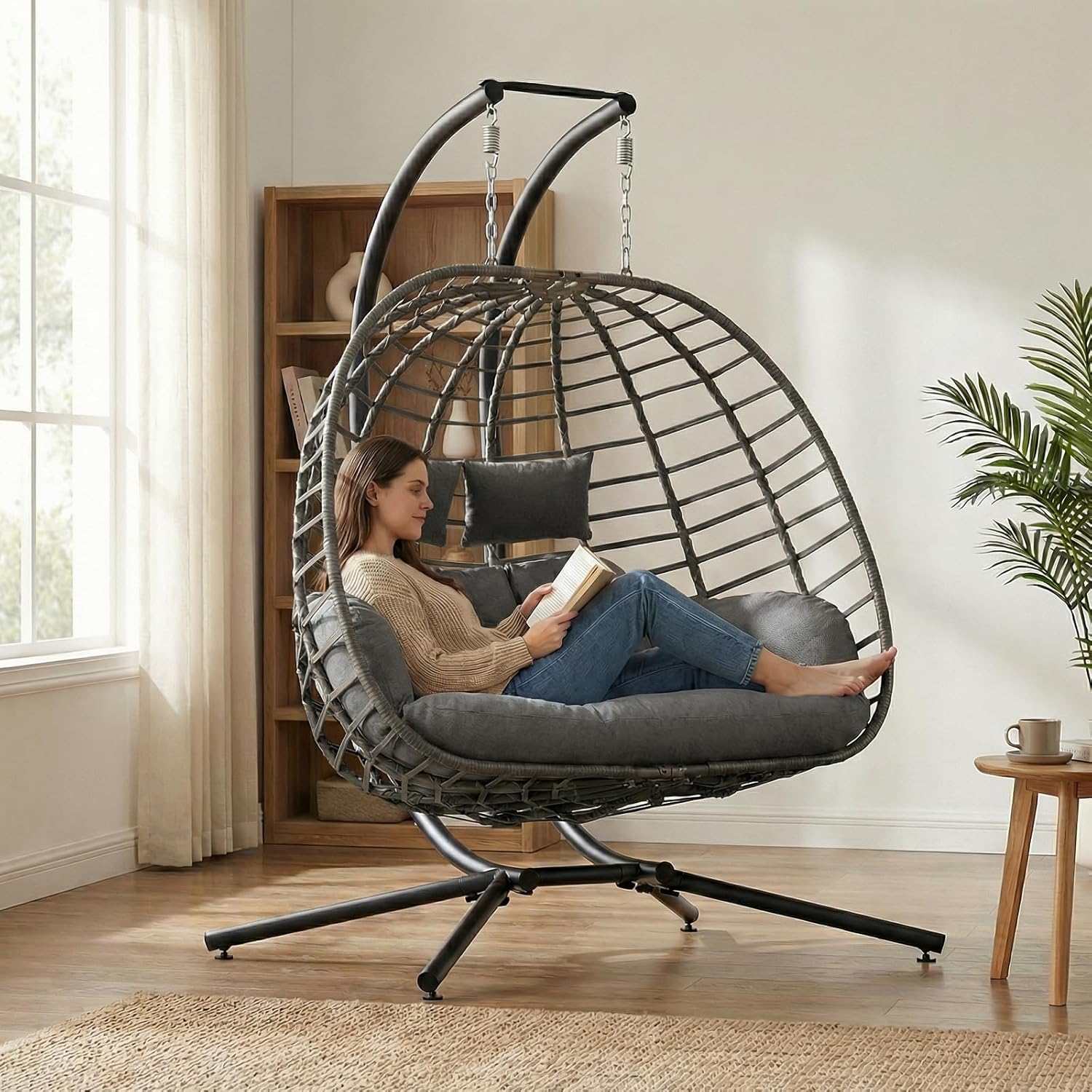 - Versatile & Thoughtful Gift: Ideal for both indoor and outdoor spaces, this double egg chair with stand fits gardens, patios, or living rooms. It’s foldable for easy storage, making it a perfect 2 person egg chair gift that’s both stylish and functional