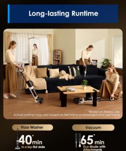 - Long-lasting Runtime: 40 minutes in a lay-flat state for Floor Washer mode, and 65 minutes in Eco Mode with Attachments for Vacuum mode.