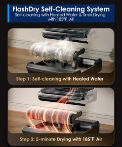 - Flashdry Self-Cleaning System: Using heated fresh water to effectively dissolve stains from the pipe to the brush roller, and then using 185℉ hot air to effectively dry every part of the machine. Truly worry-free after use.