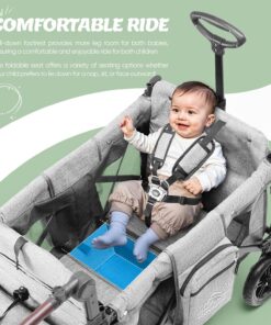 - Convertible Baby Cradle Mode: Unlike traditional stroller wagons, this wagon stroller for 2 kids features a unique convertible baby cradle mode, allowing your child to rest comfortably during outdoor adventures. Whether you’re strolling through the park or traveling long distances, this kids wagon stroller ensures a cozy and secure experience for your little one.