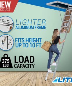 LITE 10ft Aluminum Attic Ladder, 375lb Capacity, Type IAA
