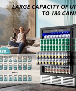 EUHOMY 24 in Beverage Refrigerator 180 Can Built In Cooler Under Counter Glass Door