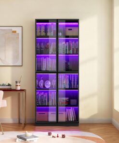 JOYUSAEN 78 in Display Cabinet Bookshelf with LED Lighting Glass Door Large Storage