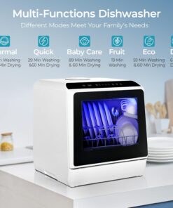 EUHOMY Countertop Dishwasher Portable with 6 Programs 5L Water Tank High Temp Baby Care