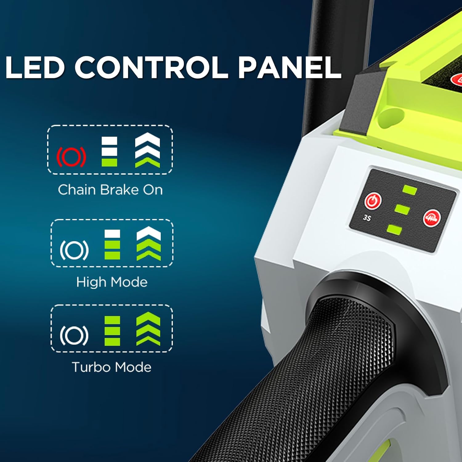- 【Professional Performance And three levels of power regulation】: Ultra-high chain speed of 42.58 ft/s makes this chainsaw the fastest in its class for maximum productivity and more cuts during operation, And it has three levels of power regulation, Make it the first choice for professional arborists, loggers, and experienced DIY enthusiasts.