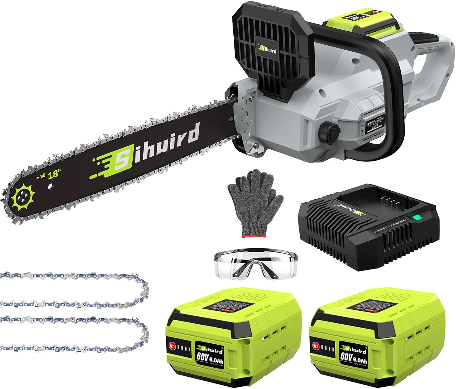 - 【60V 18 inch Cordless Chainsaw 】:Sihuird 18-Inch Cordless Chain Saw, More suitable for professionals.