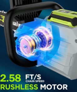 - 【High Performance Brushless Motor】:Chain Saw adopts ultra-high performance brushless motor technology, which can provide 15000RPM and 3x more torque ovides more power, longer runtime, quiet operation, and extended motor life.