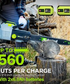 - 【Equipped with 2x60V 6.0Ah batteries】: Sihuird Chain Saw Get up to 560 cuts on 4×4 lumber on a single charge.
