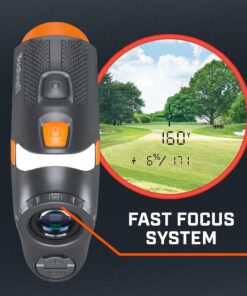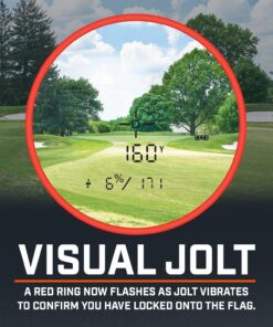 - Visual Jolt +Pinseeker for Confidence – Red ring flashes and the golf range finder vibrates when you’ve locked onto the flag. No second-guessing your target.