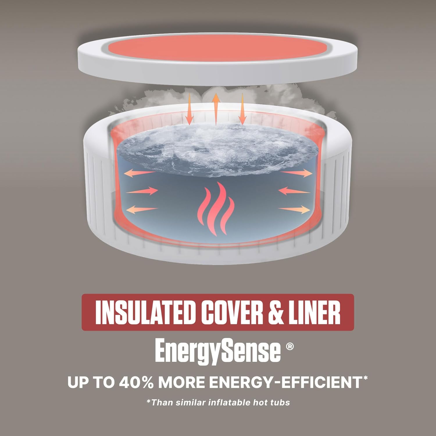 - ENERGY-EFFICIENT CONSTRUCTION: EnergySense insulated walls and cover are up to 40% more energy-efficient than similar hot tubs; MaxHold fabric internal beams provide superior air pressure retention, stability and lightweight portability; Tritech 3-layer external material offers superior durability and puncture resistance