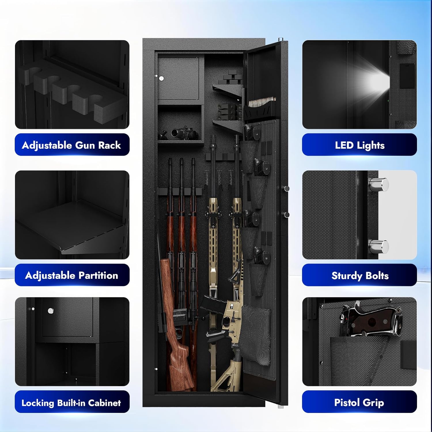 KAER Biometric Gun Safe 10 14 Rifle and Pistol Safe with Cabinet and Removable Racks